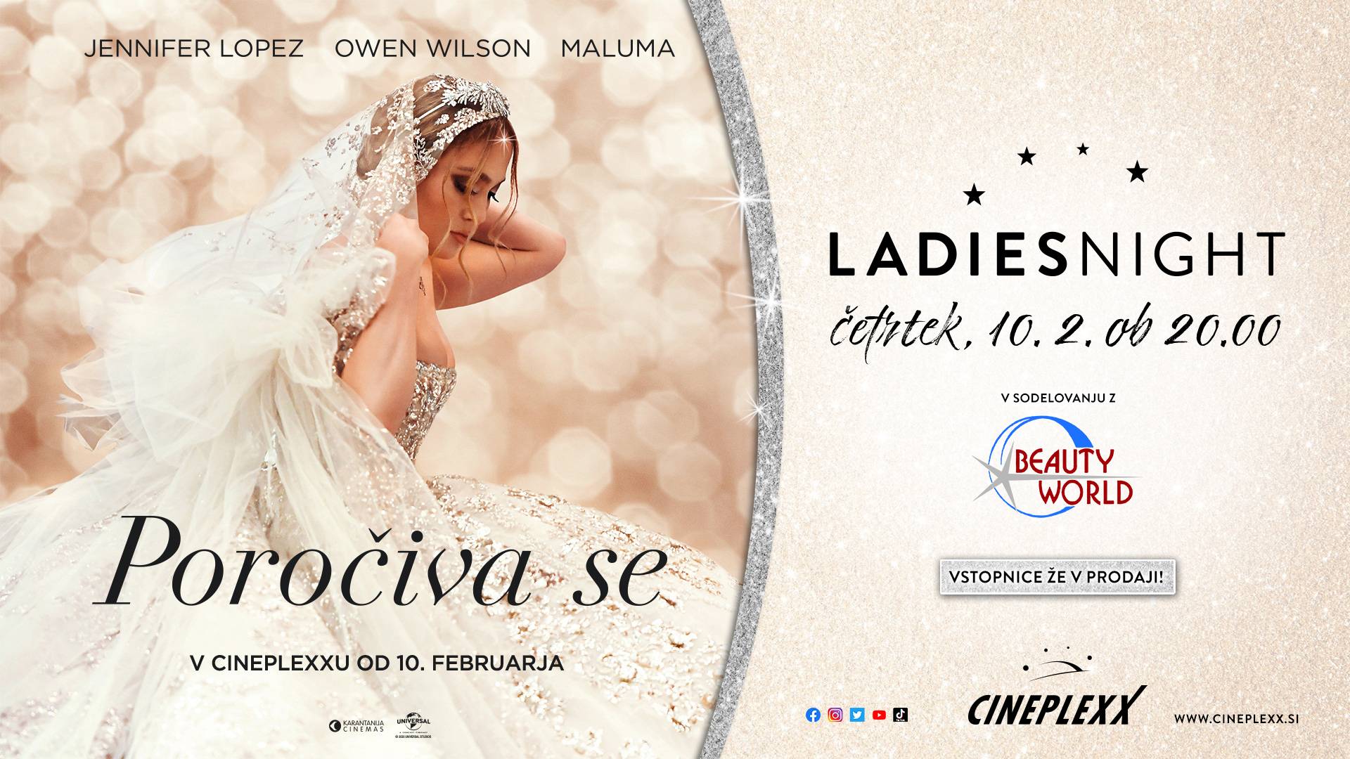 ❤ LADIES NIGHT POROČIVA SE ❤ v četrtek, 10. februarja ob 20:00 v Cineplexxu Murska Sobota.