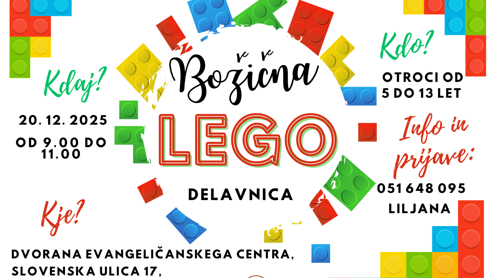 Dvorana Evangeličanskega centra Murska SobotaVabljeni na posebno praznično druženje, kjer domišljija dobi krila in LEGO kocke zaživijo v božičnih podobah! Vidimo se v soboto, 20. 12. 2025 ob 9. uri v Dvorani Evangeličanskega Centra na Slovenski ulici v Murski Soboti.