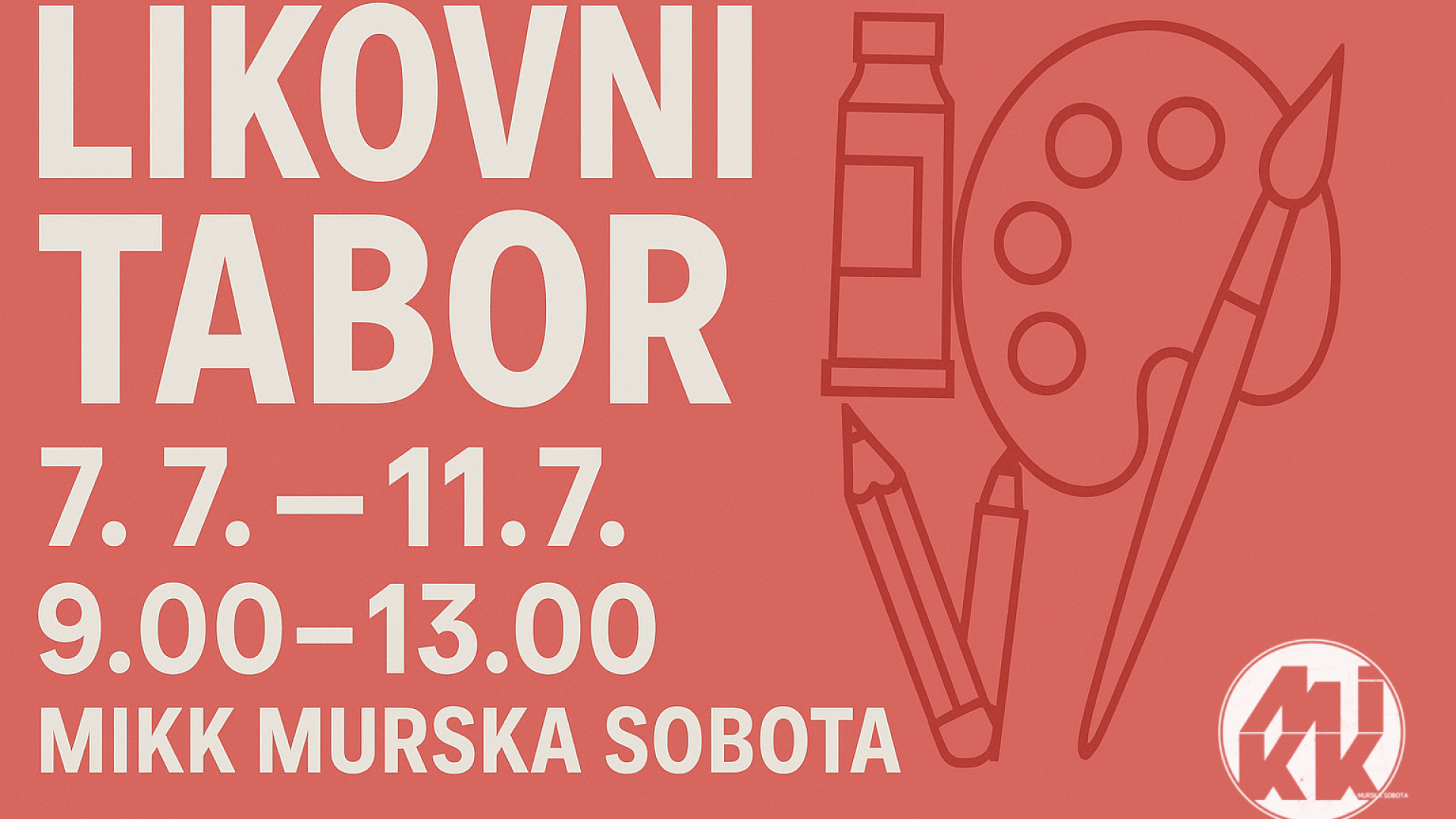 V MIKKu organiziramo likovni tabor, ki bo potekal med 7.7. in 11.7.2025 in ki je namenjen vsem mladim ustvarjalcem, ki želijo raziskovati raznolike likovne tehnike in izrazna sredstva na praktičen in igriv način. Program tabora temelji na petih ustvarjalnih delavnicah, ki spodbujajo domišljijo, trajnostno naravnanost in eksperimentiranje z materiali.