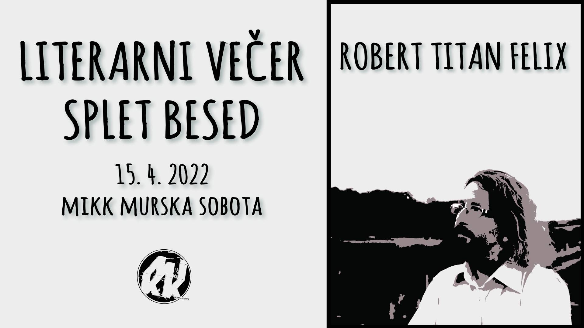 MIKK Murska Sobota Petek, 15. april 2022 ob 19h MIKK-ov klubski prostor Vstop prost Literarni večer Splet besed: Robert Titan - Felix Na literarnem večeru Splet ...