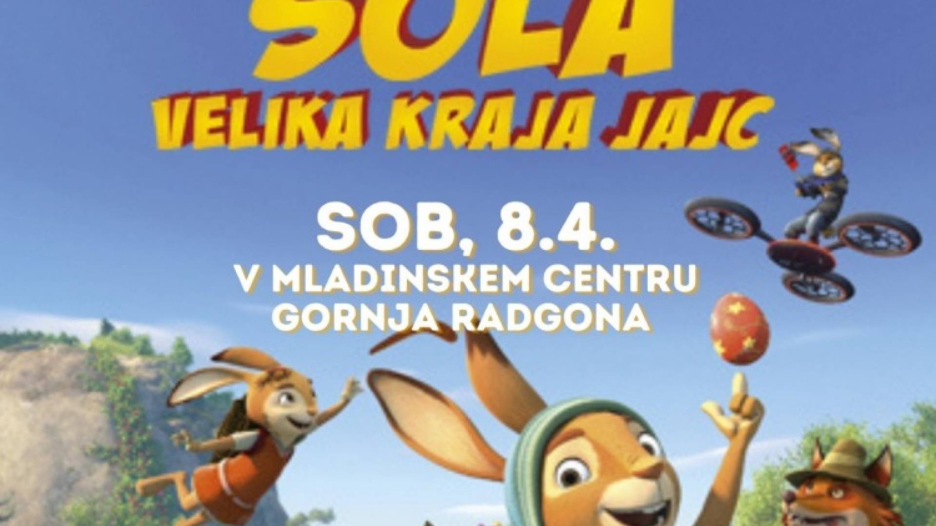 Ob 16.uri pa sledi predvajanje filma Zajčja šola: Velika kraja jajc, v prostorih Mladinskega centra Gornja Radgona.