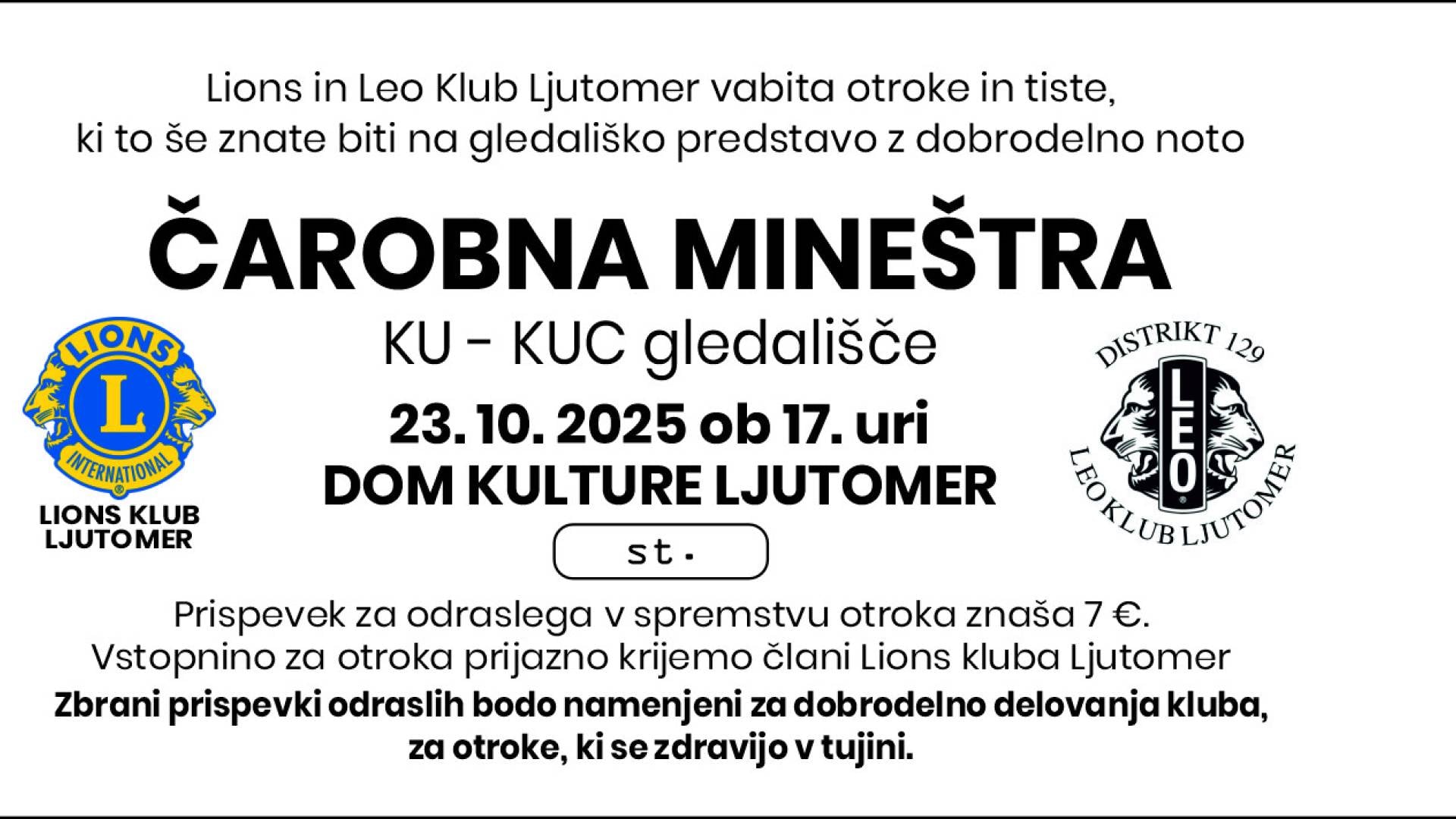 Vstopnino za otroka prijazno krijemo člani Lions kluba Ljutomer.