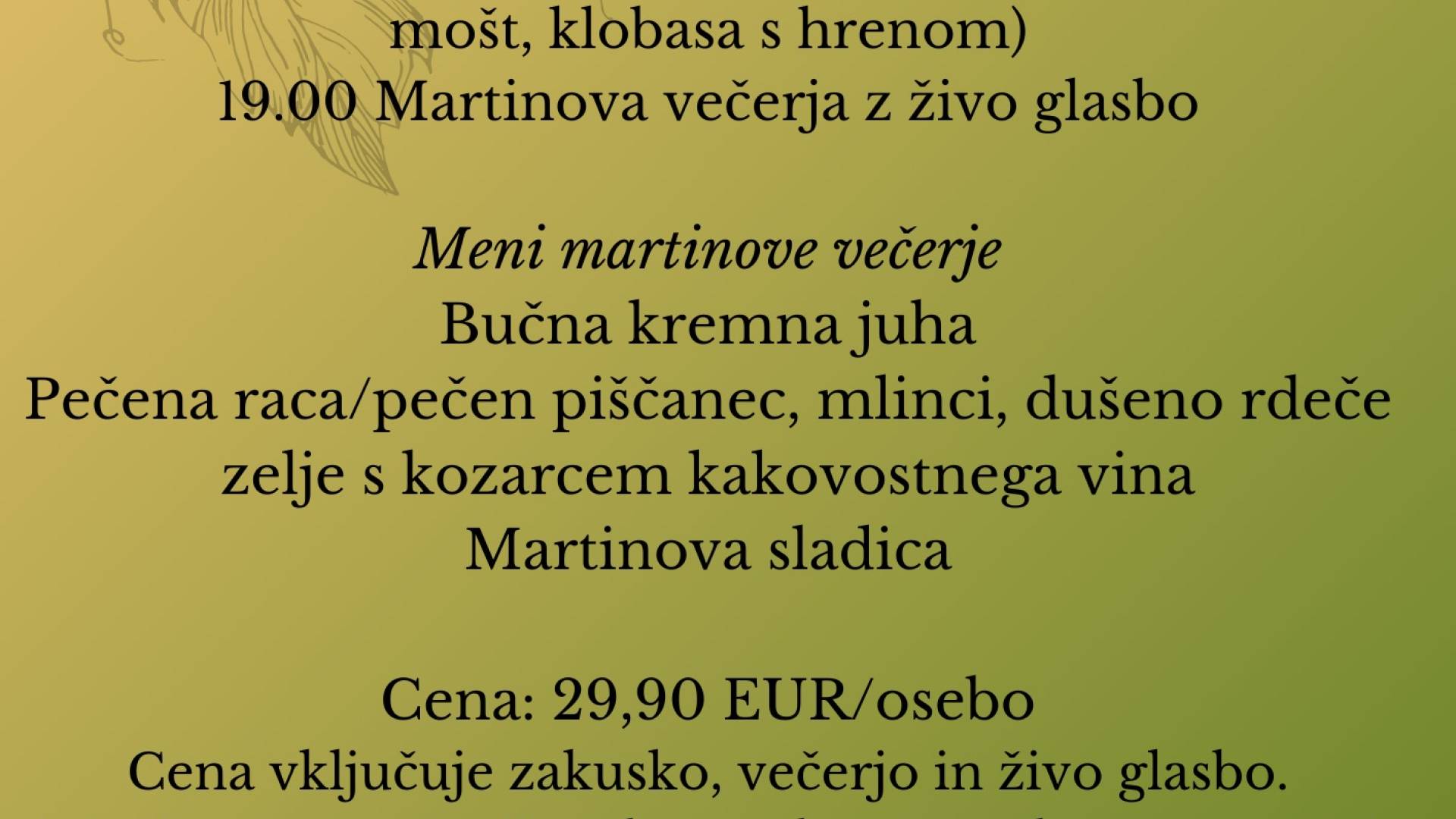 V soboto, 11. 11. 2023, vas vabimo na MARTINOVO VEČERJO V KAVARNI DVORCA RAKIČAN z živo glasbo