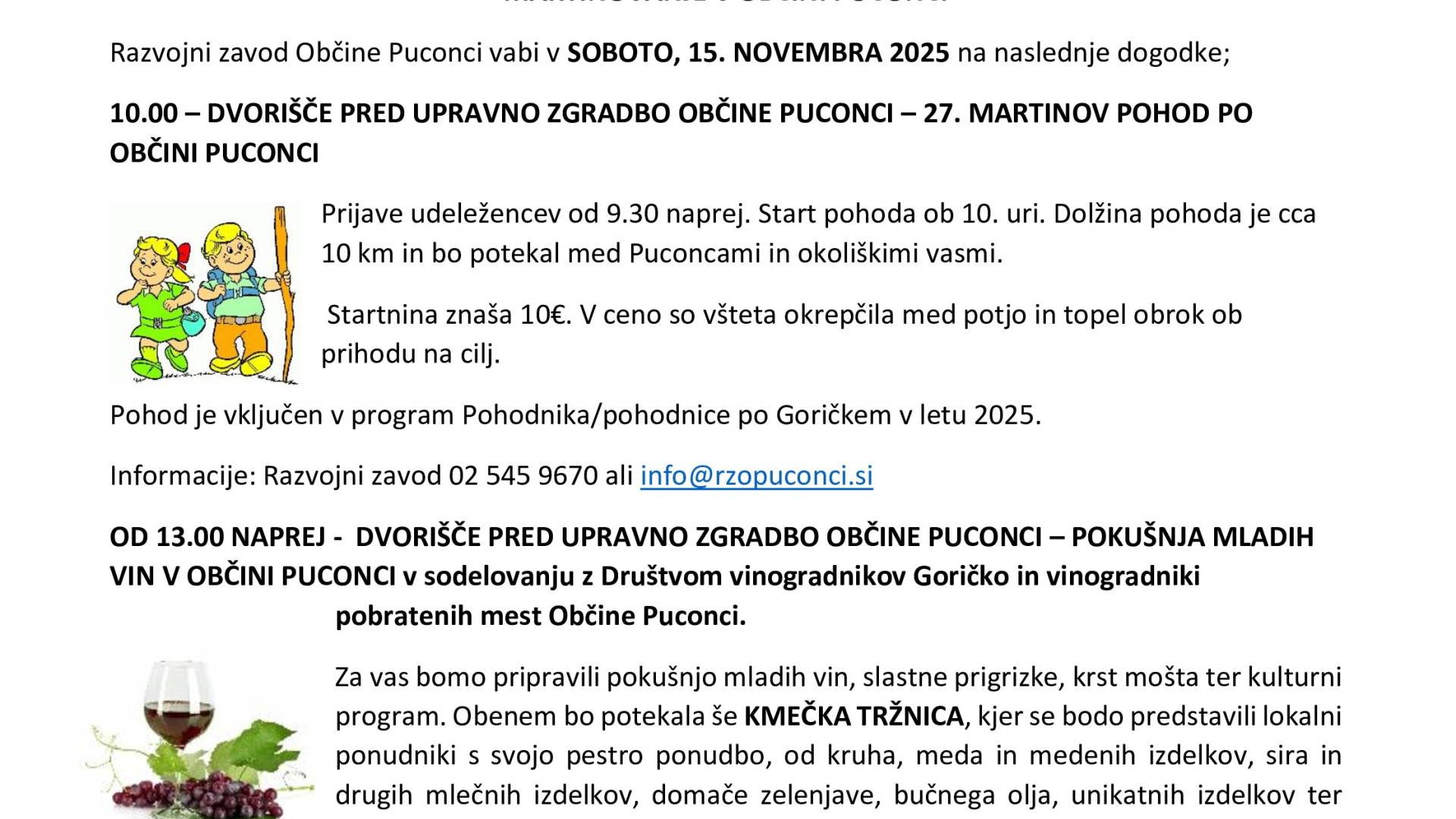 DVORIŠČE PRI OBČINI PUCONCI, PUCONCI 80Razvojni zavod Občine Puconci vabi v SOBOTO, 15. NOVEMBRA 2025 na naslednje dogodke;