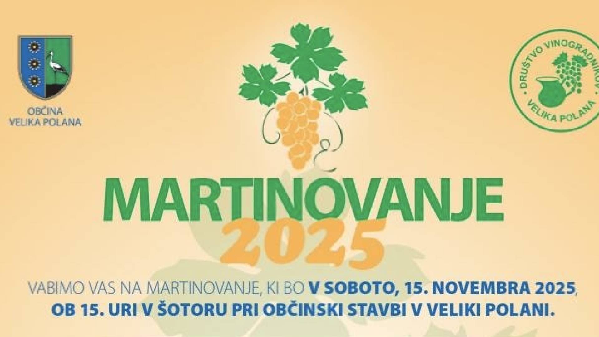 VABIMO VAS NA MARTINOVANJE, KI BO V SOBOTO, 15. NOVEMBRA 2025, OB 15. URI V ŠOTORU PRI OBČINSKI STAVBI V VELIKI POLANI.