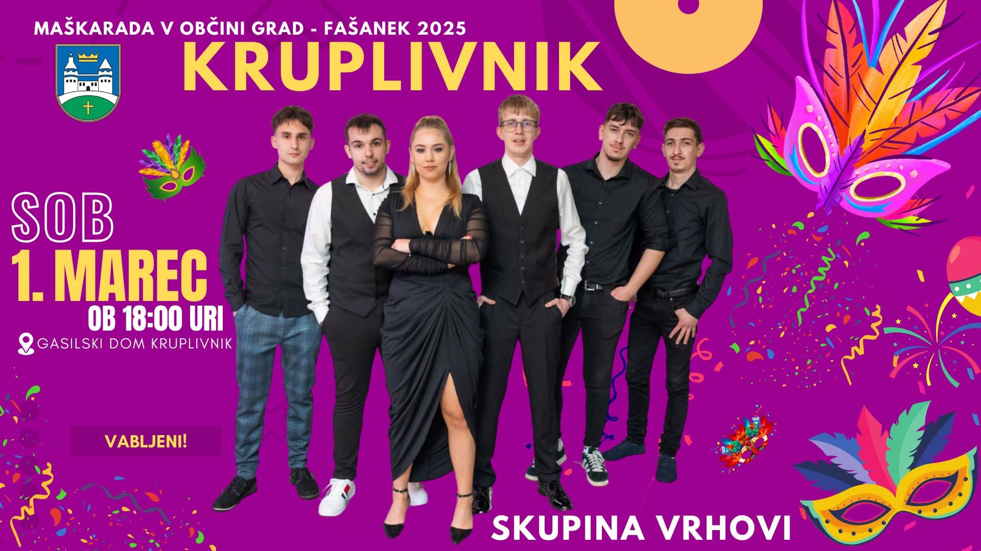 Maškarada se bo odvijala v soboto, 1. marca 2025, od 18. ure naprej v gasilskem domu Kruplivnik.