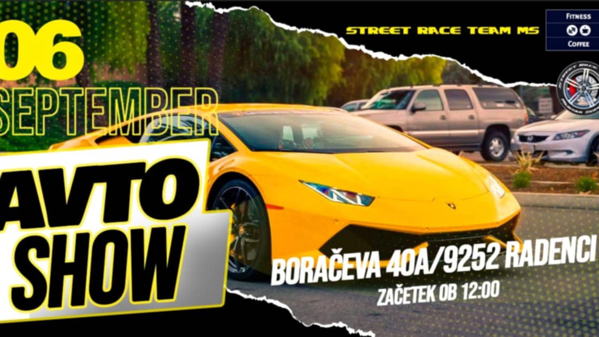 Boračeva 40a; RadenciAvto klub Street Race Team Murska Sobota Vas vabi, da v soboto 6.9. obiščete tradicionalni mednarodni Avto show (razstava predelanih, športnih in starodobnih vozil, meritve glasnosti avtoakustike, izpuhov in filtrov, igre...), in sicer na parkirišču v Boračevi 40A.