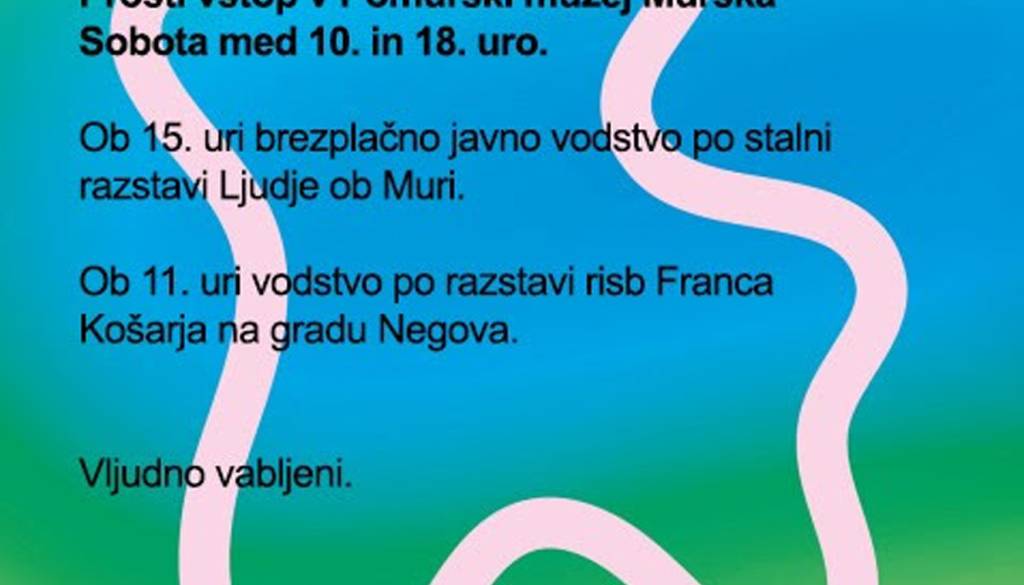 Pomurski muzej Murska SobotaPomurski muzej Murska Sobota bo ob Mednarodnem muzejskem dnevu (MMD), v nedeljo, 18. maja 2025, odprt med 10. in 18. uro. Na ta dan velja prosti vstop. Ogledate si lahko stalno razstavo Ljudje ob Muri in občasno razstavo Meja je dokončna: Prekmurje 1919-1924.