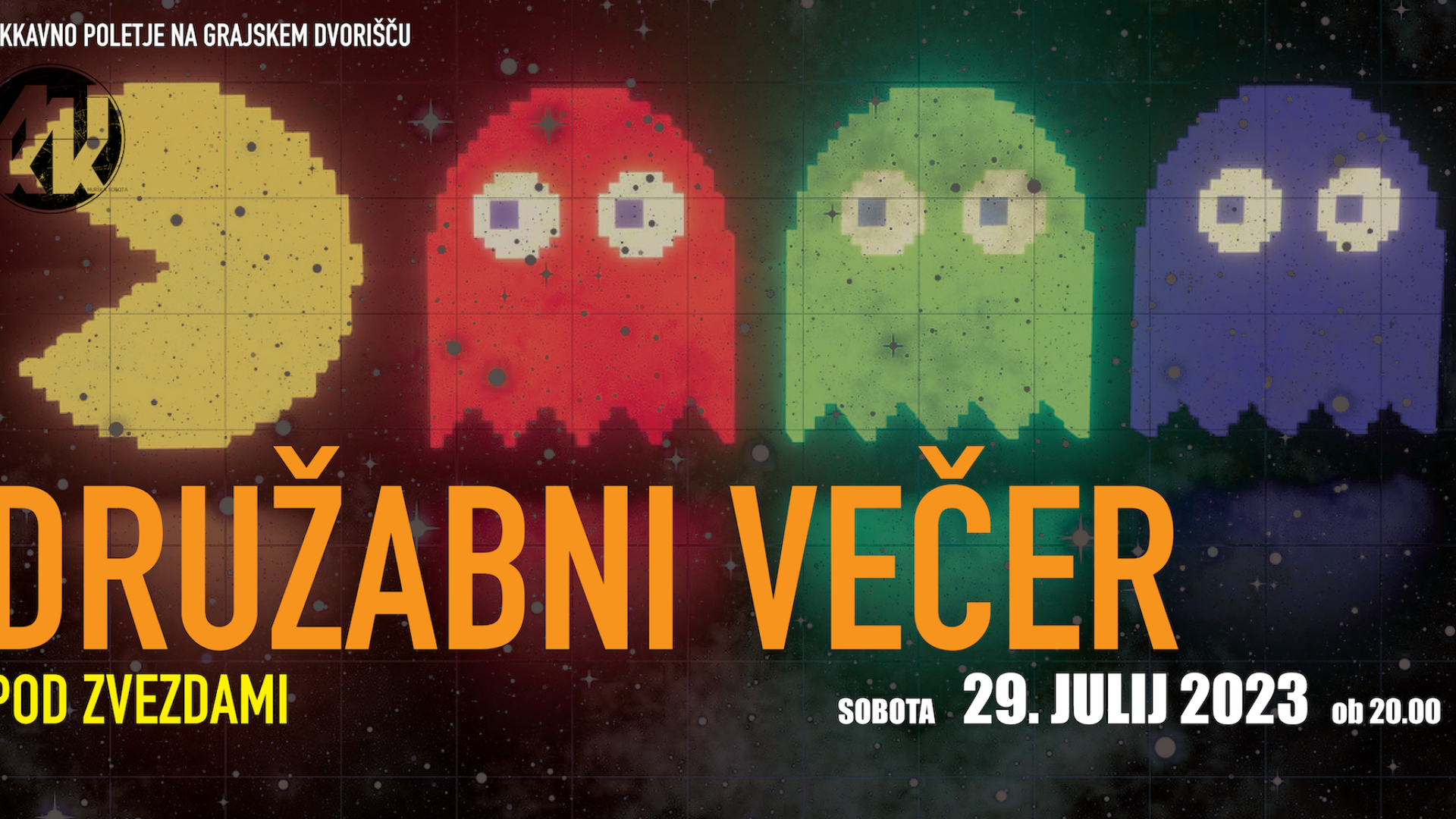 Poletni večer, Grajsko dvorišče in igranje video iger na velikem platnu.