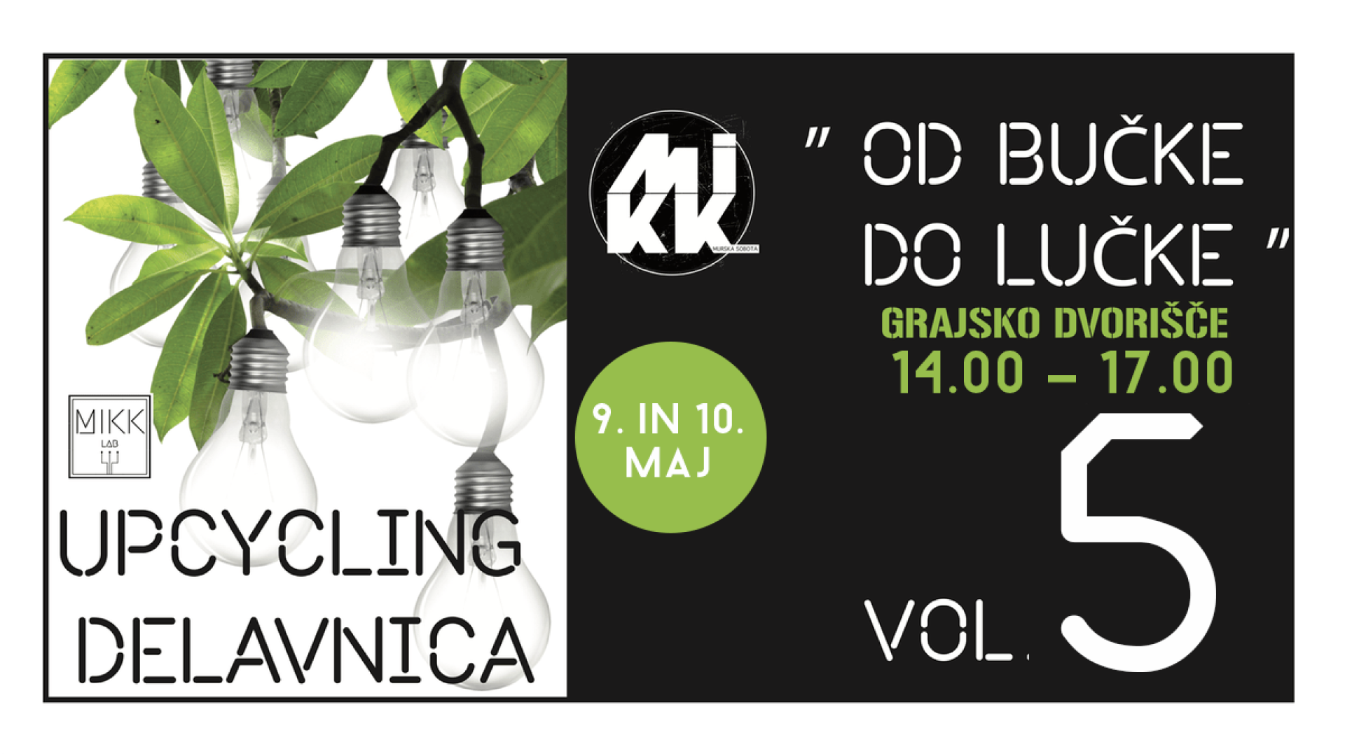 ??Na Grajskem dvorišču v Murski Soboti bo 9. in 10. maja 2019 med 14.00 do 17.00 potekala nova serija upcycling delavnic ”Od bučke do lučke”,vol. 5, na kateri bomo za namen oživitve Trubarjevega drevoreda ter MIKKove terase izdelovali svetila.
