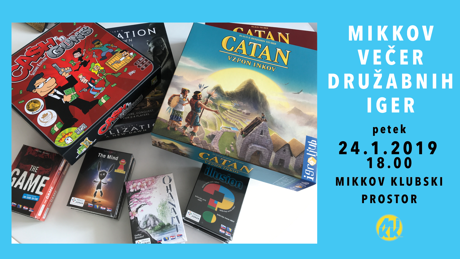 Vabljeni na družabni večer, kjer bomo igrali nove namizne igre, ki so na voljo pri nas v MIKKu.