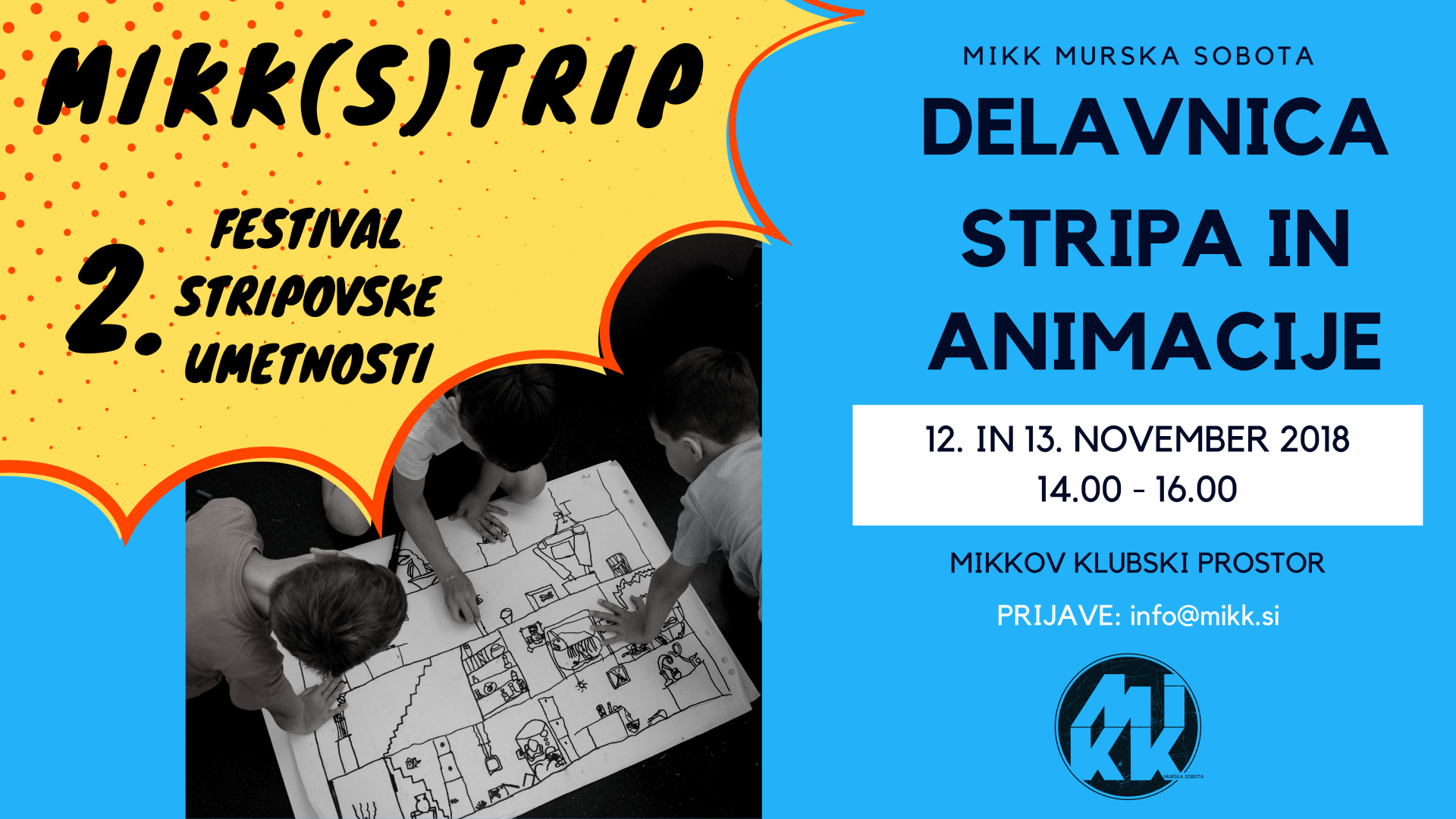 ⚠️V sklopu 2. Festivala stripovske umetnosti MIKK(s)TRIP, vas vabimo na dvodnevno delavnico stripa in animacije, ki je namenjena otrokom in mladim.
