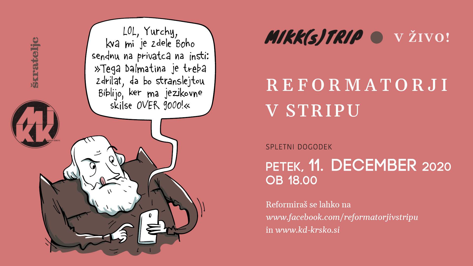 Spletni dogodek/ FB MIKK💥V petek, 11. decembra ob 18. uri vabljeni na spletni dogodek Reformatorji v stripu - v živo!, ki bo potekal v sklopu 4. Festivala stripovske umetnosti MIKK(s)TRIP ▶️