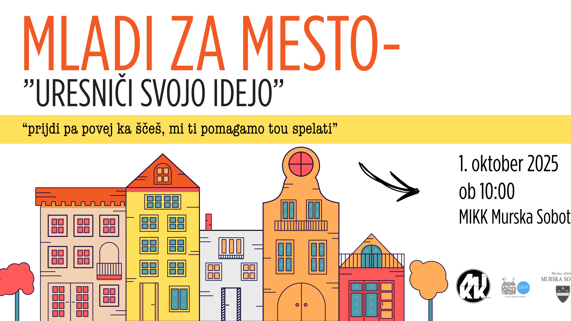 MIKK Murska SobotaV okviru projekta 𝗠𝗹𝗮𝗱𝗶 𝘇𝗮 𝗺𝗲𝘀𝘁𝗼 - 𝘂𝗿𝗲𝘀𝗻𝗶𝗰̌𝗶 𝘀𝘃𝗼𝗷𝗼 𝗶𝗱𝗲𝗷𝗼! 𝘃𝗮𝗯𝗶𝗺𝗼 𝗺𝗹𝗮𝗱𝗲 𝗸 𝘀𝗼𝘂𝘀𝘁𝘃𝗮𝗿𝗷𝗮𝗻𝗷𝘂 𝗿𝗮𝘇𝘃𝗼𝗷𝗮 𝗻𝗮𝘀̌𝗲𝗴𝗮 𝗺𝗲𝘀𝘁𝗮. Namen projekta je omogočiti mladim, da svoje ideje razvijejo in uresničijo ob strokovni podpori mentorjev ter ob pomoči ekipe MIKK Murska Sobota.