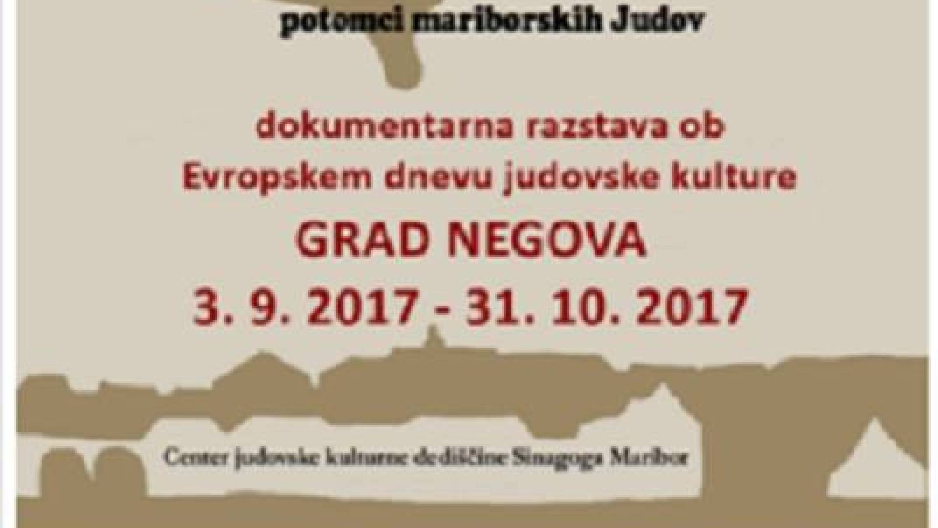 Grad Negova v NegoviTudi letos bomo na gradu Negova obeležili Evropski dan judovske kulture. V nedeljo, 3. septembra 2017, vas ob 15. uri vabimo na odprtje dokumentarne razstave Morpurgi, potomci mariborskih Judov. V Mariboru je v poznem srednjem veku živela relativno številčna in pomembna judovska skupnost. S pričujočo razstavo, ki jo pripravlja Sinagoga Maribor, se podajamo po razgibanih poteh potomcev pregnanih mariborskih Judov. Vabljeni, vstopnine ni!