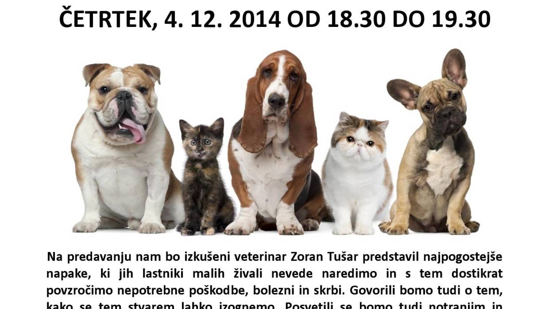 Sofija medgeneracijska hiša Lendava Glavna ulica 48 9220 LendavaNa predavanju nam bo izkušeni veterinar Zoran Tušar predstavil najpogostejše napake, ki jih lastniki malih živali nevede naredimo in s tem dostikrat povzročimo nepotrebne poškodbe, bolezni in skrbi. Govorili bomo tudi o tem, kako se tem stvarem lahko izognemo. Posvetili se bomo tudi notranjim in zunanjim zajedalcem, ki so lahko zelo nadležni. Dotaknili se bomo tudi tegob in izzivov, ki jih prinašata s seboj zima in praznično obdobje petard in ognjemetov in je za naše kosmatince lahko zelo nevarno in nadležno.