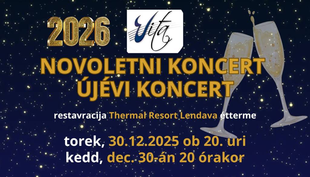 Meghívjuk Önöket a Vita Kamarakórus újévi koncertjére, amelyre a Lendvai Thermal Resort szálloda éttermében kerül sor kedden, december 30-án, 20 órakor. Tegye szebbé az év végét gyönyörű ünnepi dallamokkal!