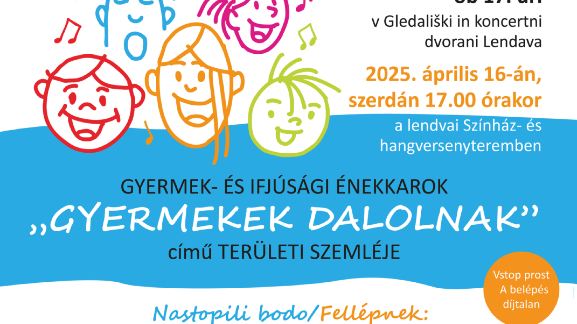 Gledališka in koncertna dvorana LendavaVljudno vabljeni na OBMOČNO REVIJO OTROŠKIH IN MLADINSKIH ZBOROV »OTROCI POJO«,