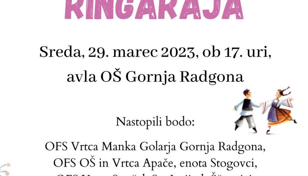 Območno srečanje otroških folklornih skupin Jana Bohar | 22. marec 2023 09:09 v Termin Sreda, 29. marec 2023 17:00 Lokacija Osnovna šola Gornja Radgona Vabljeni!