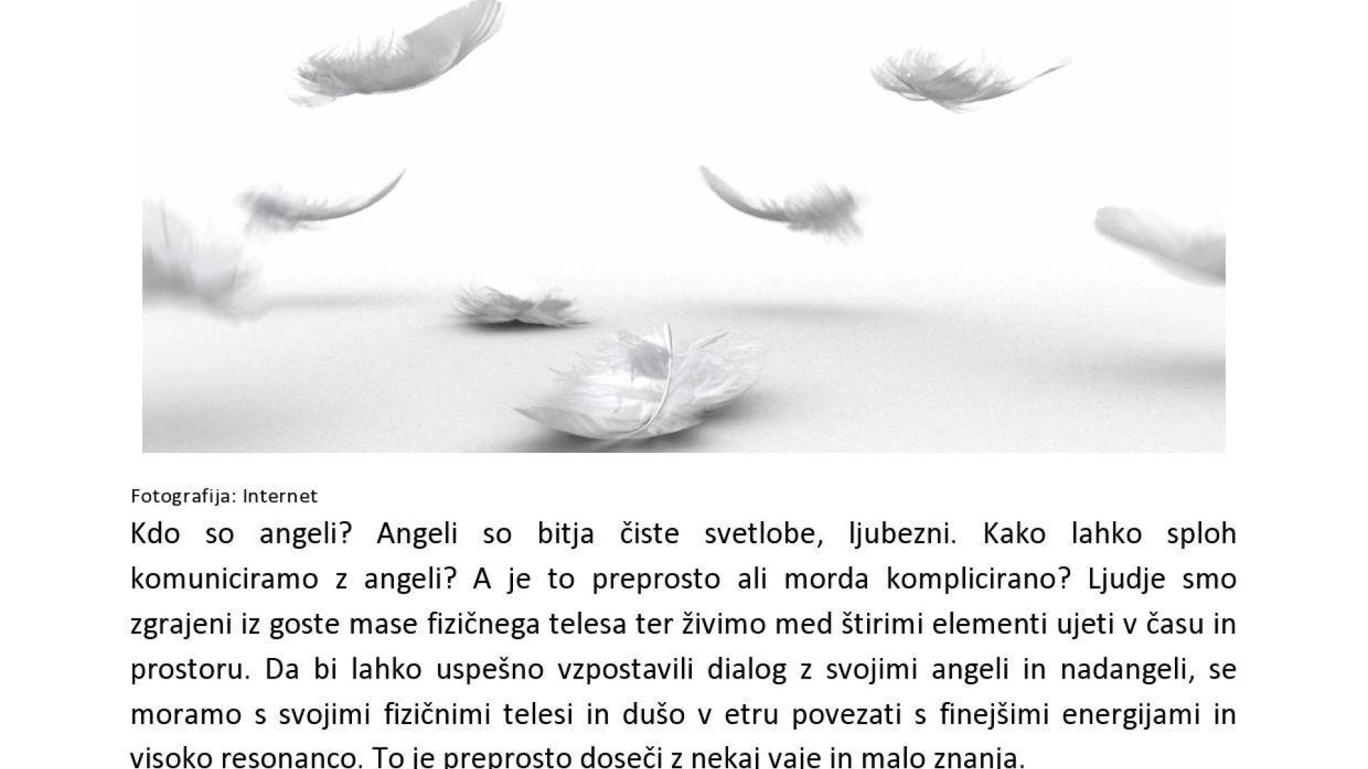 Kdo so angeli? Angeli so bitja čiste svetlobe, ljubezni. Kako lahko sploh komuniciramo z angeli? A je to preprosto ali morda komplicirano? Ljudje smo zgrajeni iz goste mase fizičnega telesa ter živimo med štirimi elementi ujeti v času in prostoru. Da bi lahko uspešno vzpostavili dialog z svojimi angeli in nadangeli, se moramo s svojimi fizičnimi telesi in dušo v etru povezati s finejšimi energijami in visoko resonanco. To je preprosto doseči z nekaj vaje in malo znanja.