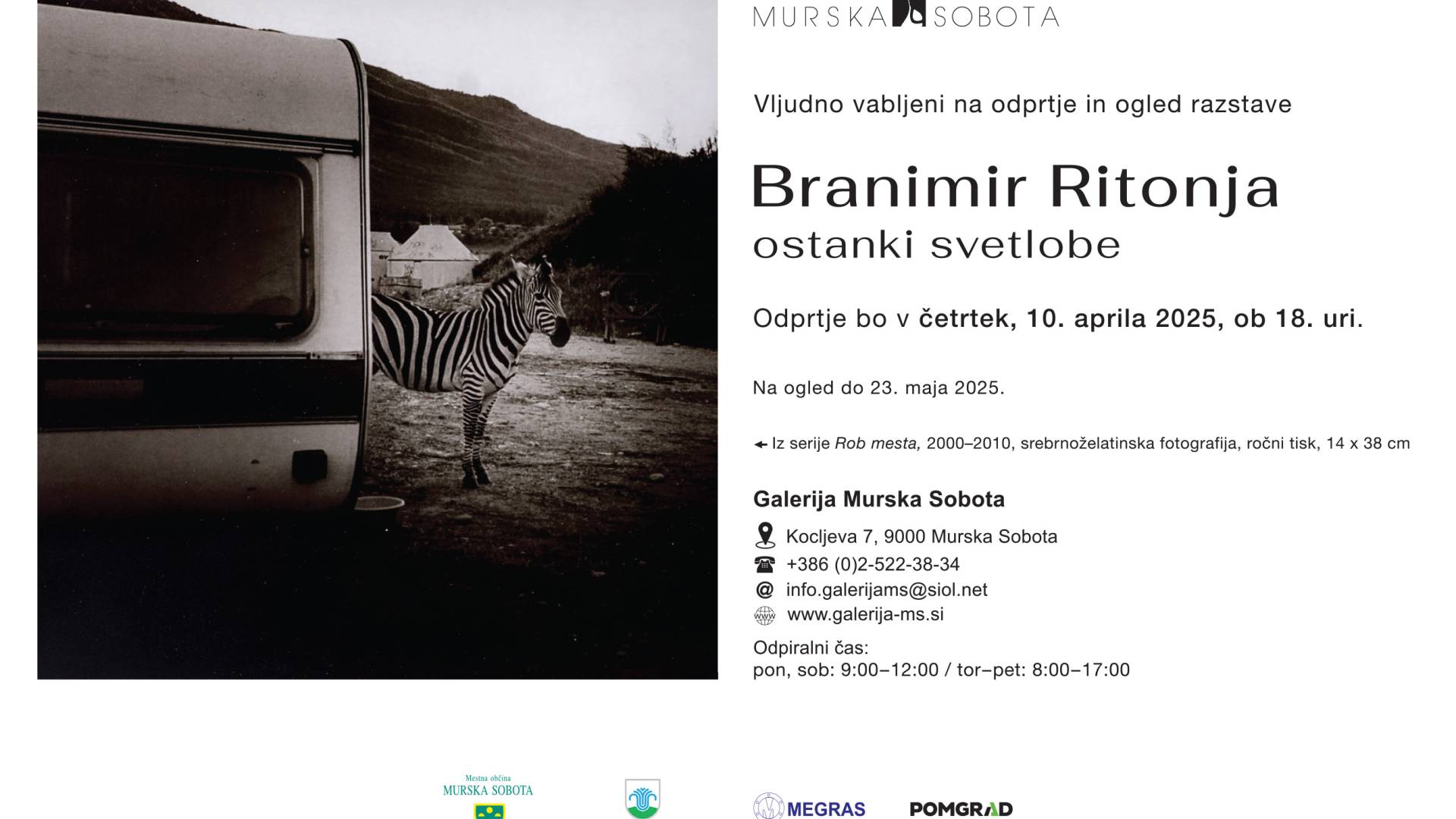 Odprtje fotografske razstave: Branimir Ritonja gregor1 | 2. april 2025 15:46 v Kultura Termin Četrtek, 10. april 2025 18:00 Lokacija Galerija Murska Sobota Odprtje fotografske razstave Branimirja Ritonje.