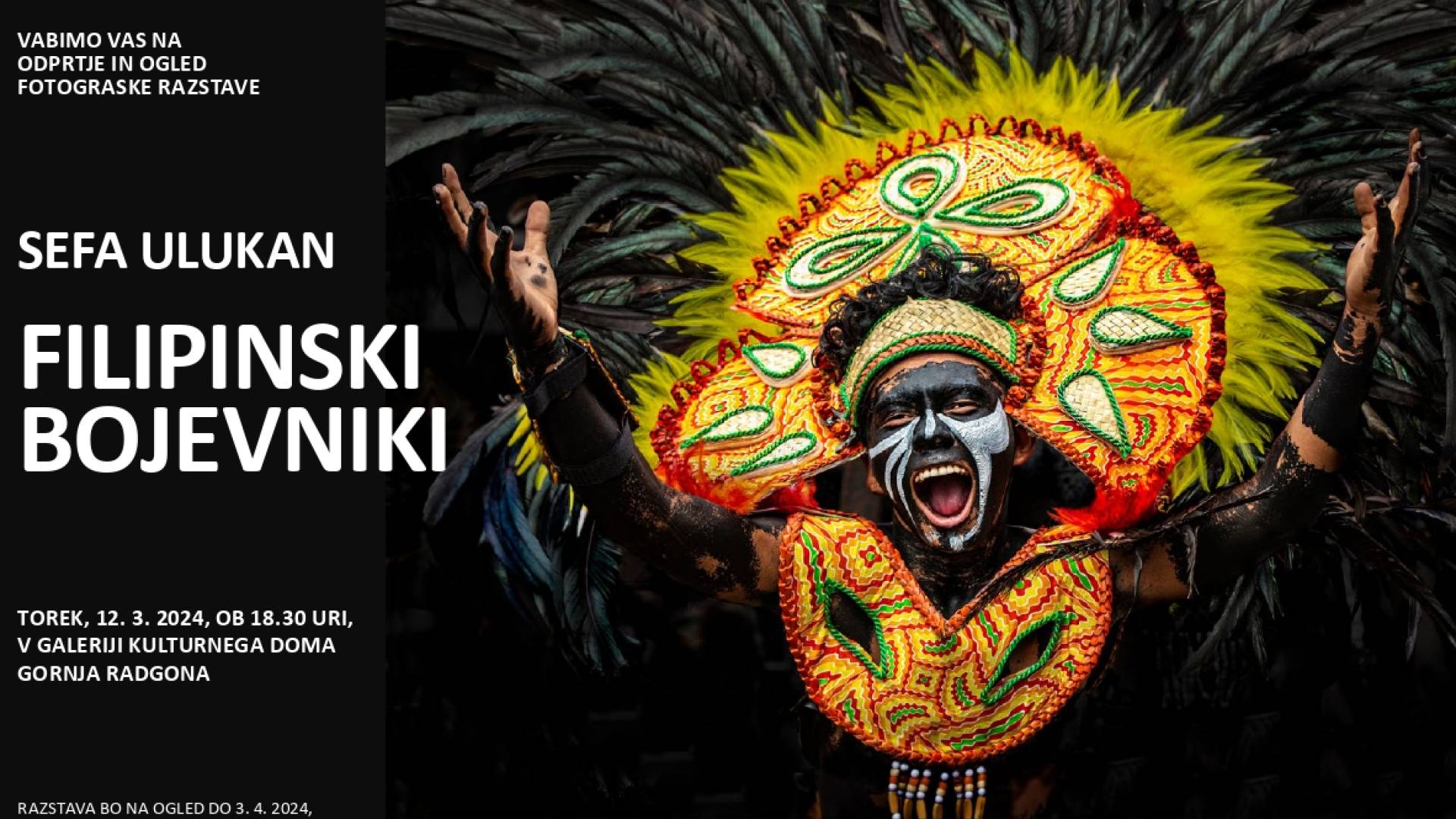 Galerija Doma kulture Gornja RadgonaPrijazno vabljeni na odprtje in ogled fotografske razstave Sefa Ulukana: Filipinski bojevniki v galerijo Doma kulture Gornja Radgona. Odprtje bo v torek, 12. marca 2024, ob 18.30 uri.