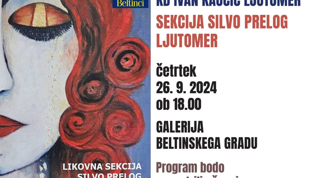Grad Beltinci, galerijaVabljeni na odprtje likovne razstave KD Ivan Kaučič Ljutomer, Sekcija Silvo Prelog Ljutomer, ki bo v četrtek, 26. 9. 2024 ob 18.00, v galeriji beltinskega gradu.