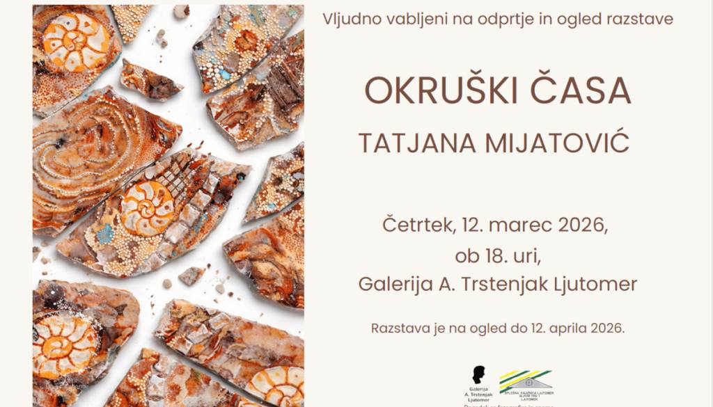 Galerija Ante Trstenjaka LjutomerVabljeni na odprtje in ogled razstave Okruški časa, ki bo v četrtek, 12. 3. 2026, ob 18. uri v Galeriji Ante Trstenjak.