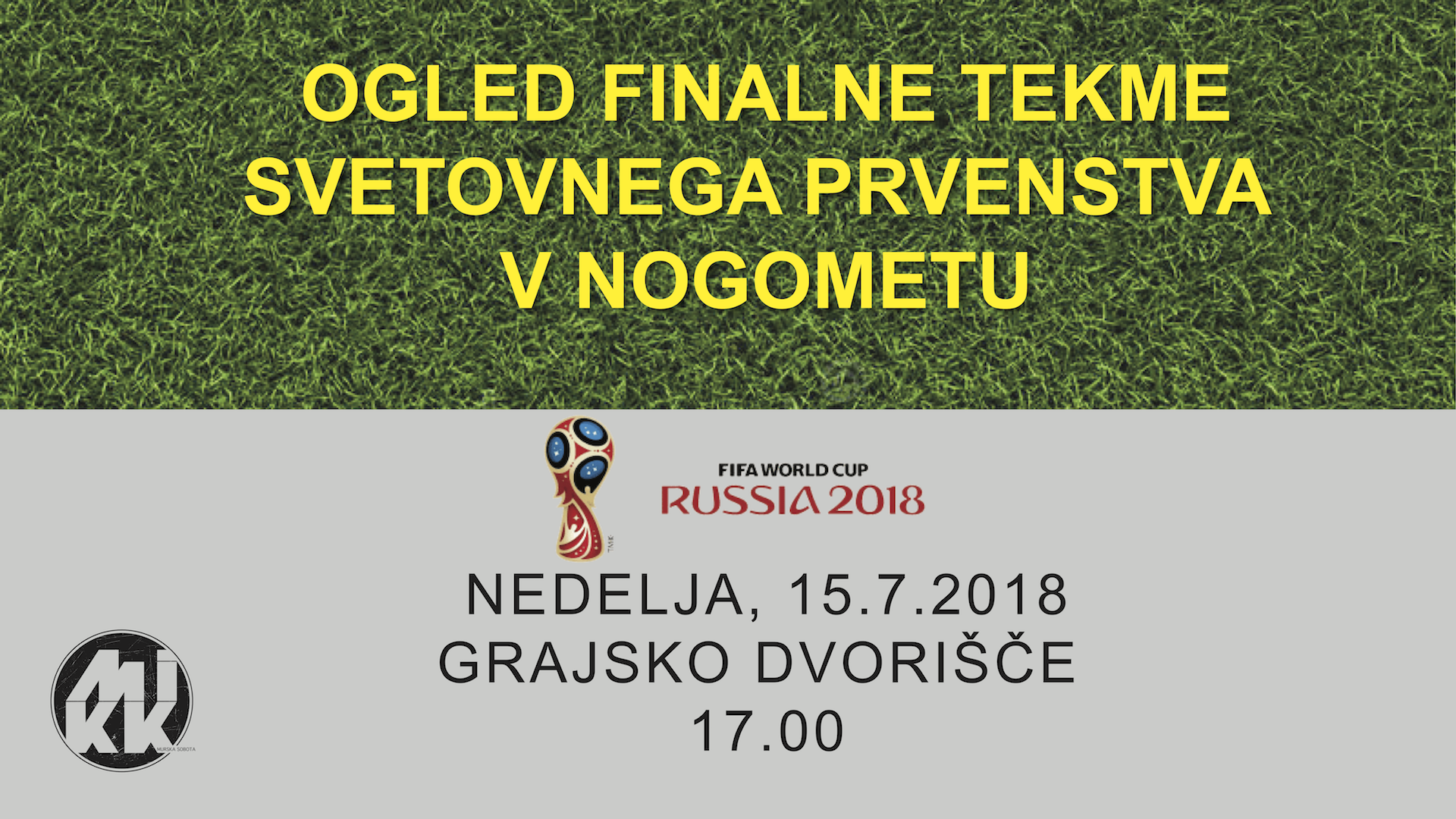 Vabljeni na ogled finalne nogometne tekme Svetovnega prvenstva v Rusiji 2018, kjer bomo na velikem platnu spremljali letošnji razplet finalnega obračuna ⚽️?