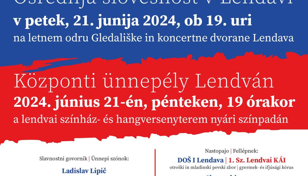 Ob dnevu državnosti vas vabimo na osrednjo slovesnost, ki bo v petek, 21. junija 2024, ob 19. uri na letnem odru Gledališke in koncertne dvorane Lendava.