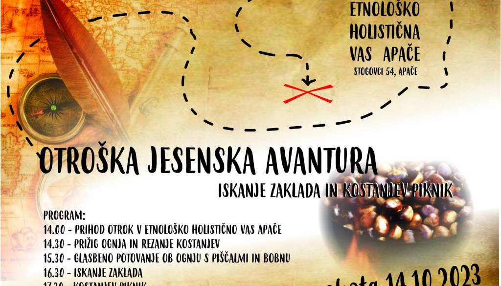 Etnološko holistična vas ApačeV soboto, 14.10.2023 od 14.00 naprej organiziramo dogodek za osnovnošolce in njihove starše, ki smo ga poimenovali OTROŠKA JESENSKA AVANTURA.