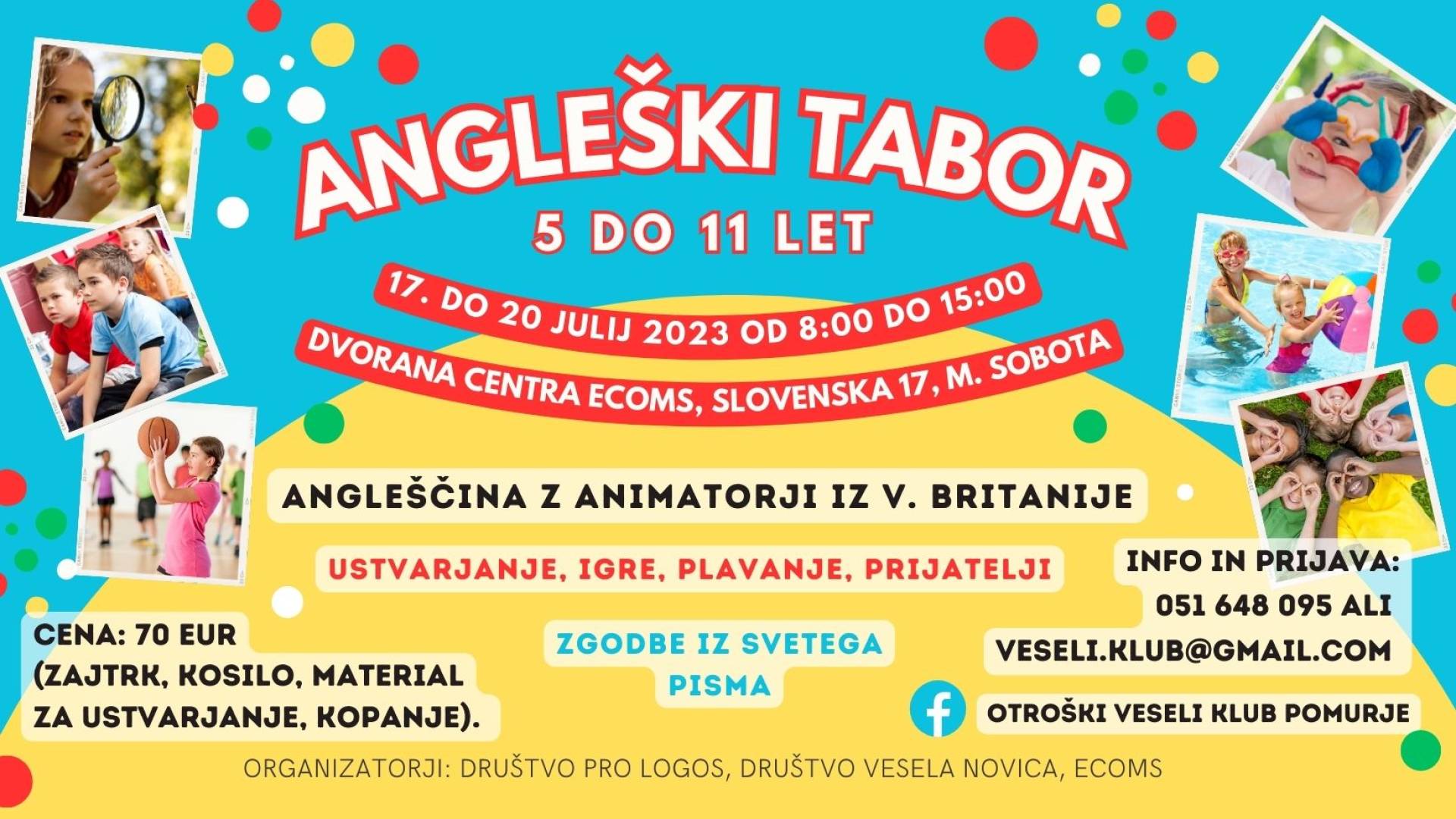 Dvorana Evangeličanskega centra Murska SobotaPreživite poletne dni z nami in utrdite svoje znanje angleščine v pogovoru z učitelji iz Velike Britanije, od 17. do 20. 7. 2023 od 8.00 do 15.00 v Dvorani Evangeličanskega Centra na Slovenski ulici 17 v Murski Soboti.