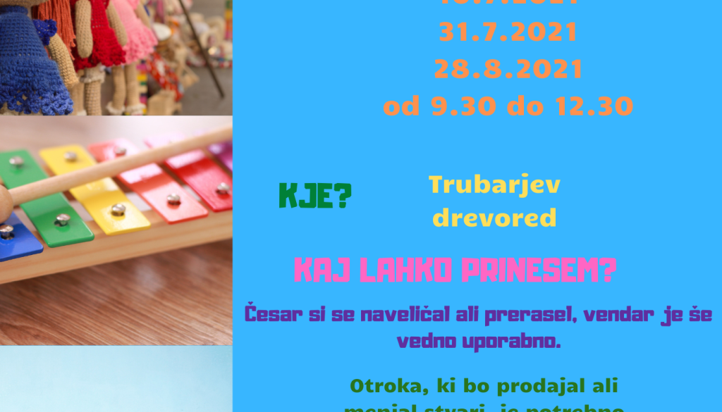 V soboto, 10. 7. 2021, jih lahko prodate ali zamenjate na Otroškem bolšjaku, v prijetni senci mestnega parka Murska Sobota.