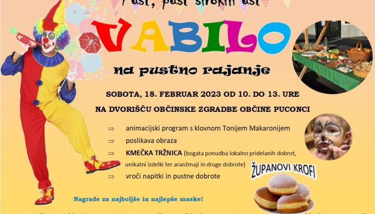 ☕️🍩Seveda pa nismo pozabili na pustne krofe in topel čaj, ob katerih se bodo malčki in starši posladkali. Vsaka maska bo dobila tudi zastonj balon.