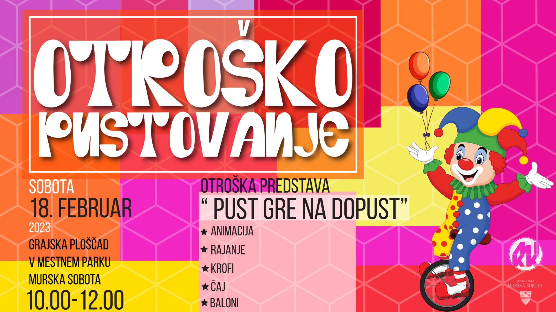 🌳MIKK Murska Sobota v sodelovanju z Mestno občino Murska Sobota in gledališčem Smejček, vabi v soboto, 18. februarja 2023 na Otroško pustovanje, ki bo potekalo od 10.00 do 12.00 na Grajski ploščadi v mestnem parku.