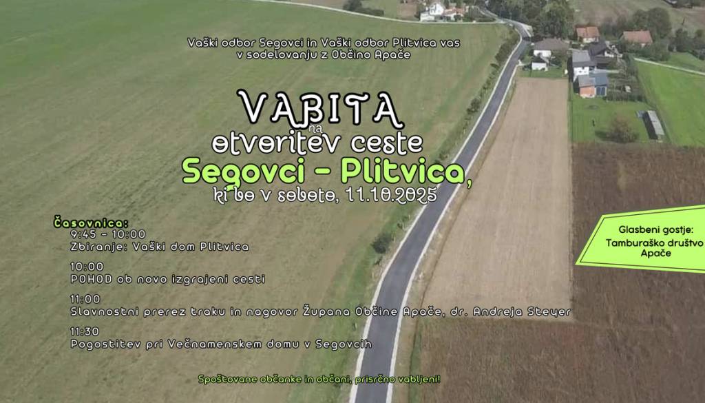 Otvoritev ceste Segovci – Plitvica, ki bo v soboto, dne 11. oktobra 2025.