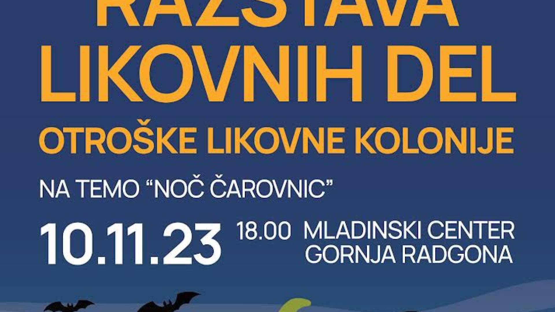 Mladinski center Gornja RadgonaV Madinskem centru v Gornji Radgoni bo v petek, 10. 11. 2023, ob 18. uri otvoritev razstave likovnih del, ki so nastala na Otroški likovni koloniji. Otroci so slikali na temo NOČ ČAROVNIC. Vabljeni!