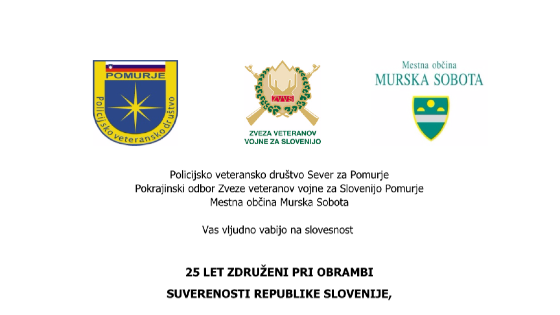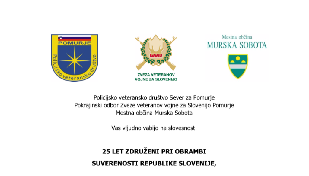 Vabimo vas na slovesnost posvečeno 25-letnici ustanovitve Manevrske strukture narodne zaščite v Pomurju in 26-letnici akcije Sever ter na otvoritev razstave.