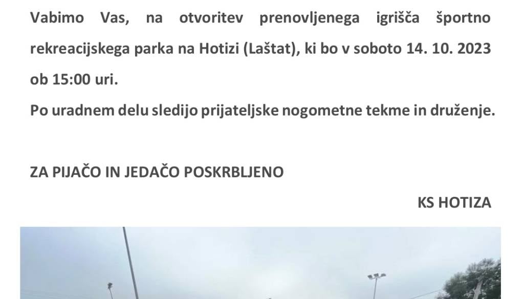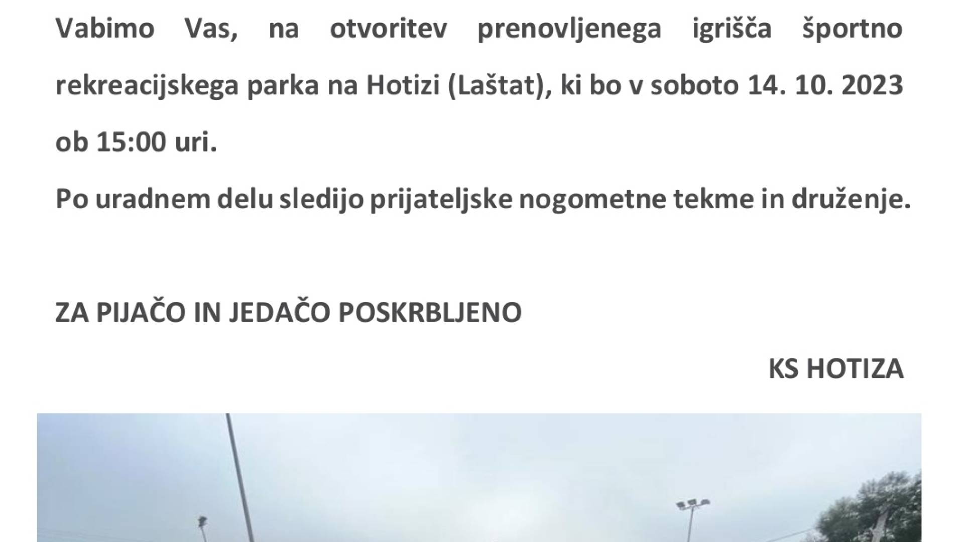 Laštat HotizaVabljeni na otvoritev prenovljenega športnega parka - igrišča Laštat