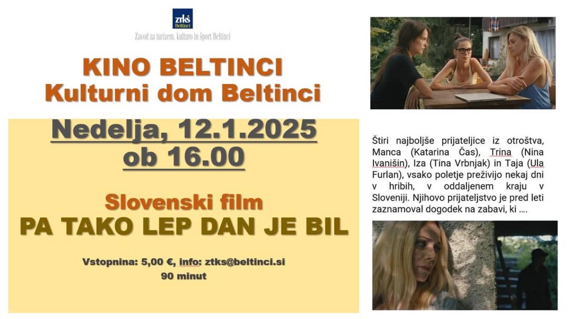 Kino Beltinci, Kulturni domVableni na ogled filma PA TAKO LEP DAN JE BIL, v Kino Beltince – Kulturni dom, ki bo v nedeljo, 12. 1. 2024 on 16.00 uri.