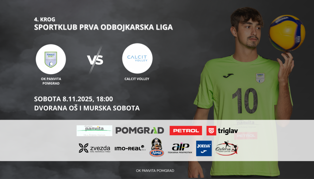 PANVITA POMGRAD vs CALCIT KAMNIK Dus Ben | 3. november 2025 12:04 v Šport Termin Sobota, 8. november 2025 18:00 Lokacija Osnovna šola 1 Murska Sobota ODBOJKA