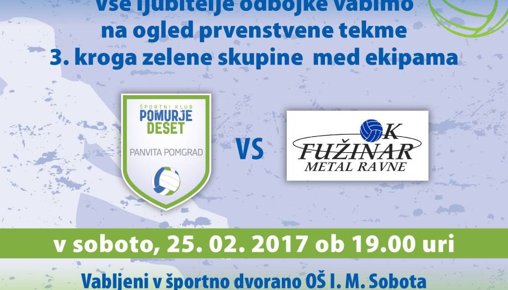 Dragi navijači, naši odbojkarji so željni nove zmage, zato pridite na tekmo in dvorano I. osnovne šole napolnimo do zadnjega kotička in pripravimo zmagovalno vzdušje, ki bo do zmage popeljalo odbojkarje Panvite Pomgrad.
