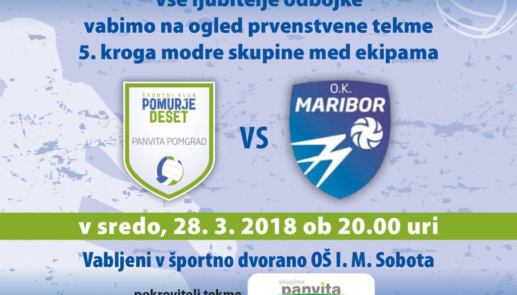 Zadnji krog modre skupine državnega prvenstva nam bo postregel z odbojkarsko poslastico in to že v sredo, 28. 03. 2018, ko v Mursko Soboto prihaja OK Maribor.