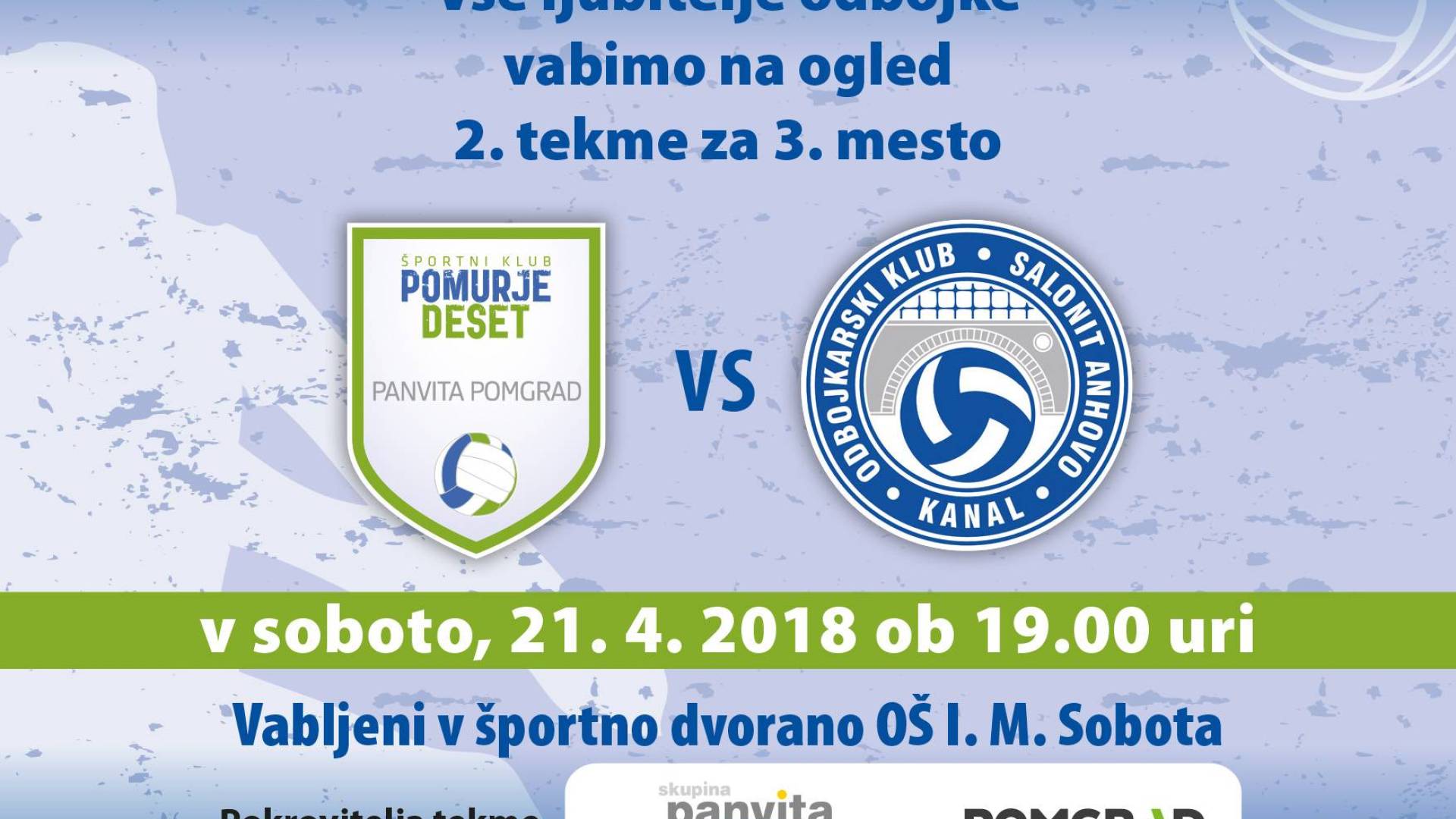 Pokrovitelja tekme sta Skupina Panvita in Pomgrad.