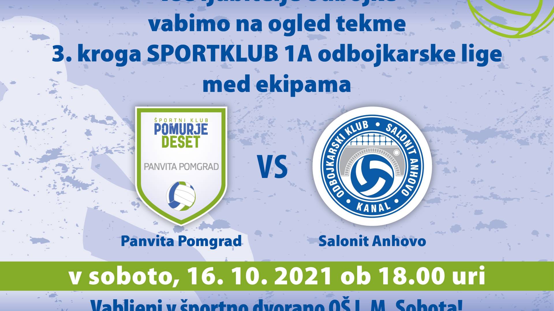 Panvita Pomgrad vs. Salonit Anhovo Dus Ben | 11. oktober 2021 09:19 v Termin Sobota, 16. oktober 2021 18:00 - Sobota, 16. oktober 2021 20:00 Lokacija ŠPORTNA DVORANA OŠ 1 MURSKA SOBOTA ODBOJKA SPORTKLUB 1.A DOL
