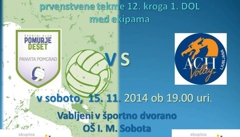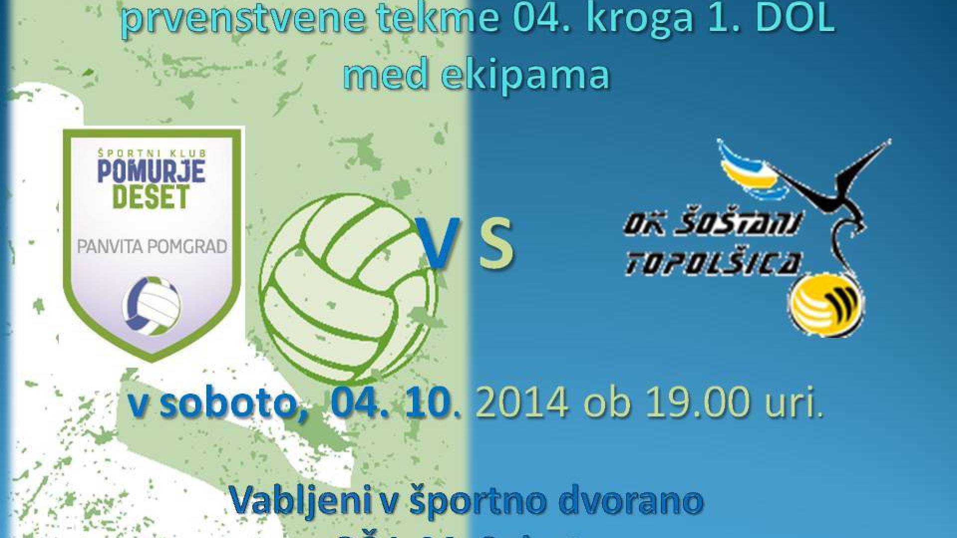 Športna dvorana OŠ I Murska SobotaLjubitelji odbojke, pozor! Tudi ta konec tedna bo Panvita Pomgrad zaigrala v domači dvorani, in sicer proti Šoštanj Topolšici. Cilj Sobočanov je samo en in to je zmaga! K uresničitvi lahko veliko pripomorete tudi vi, dragi navijači Panvite Pomgrad. Zato pridite na tekmo in z glasnim navijanjem Sobočanom pomagajte do novih točk. Se vidimo v soboto, 04.10.2014 ob 19. uri v športni dvorani I. osnovne šole Murska Sobota.