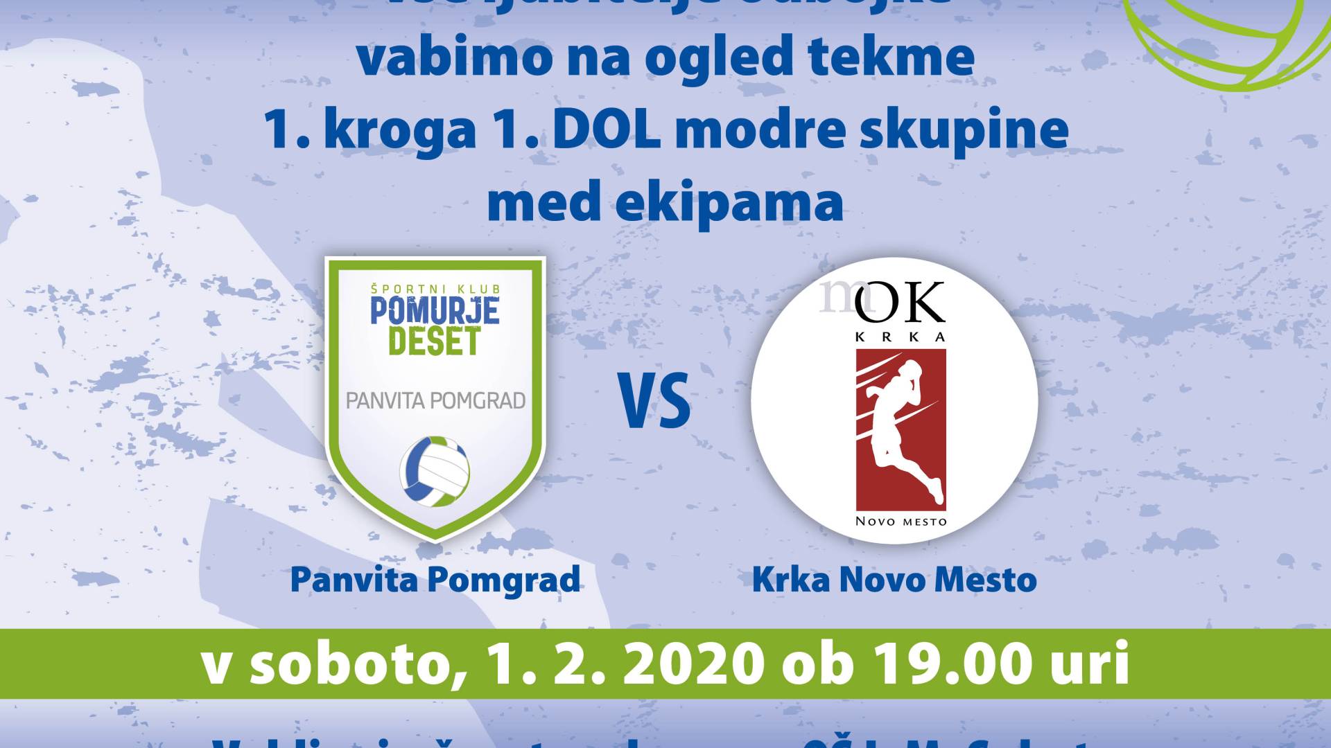 Panvita Pomgrad vs.Krka Novo Mesto Dus Ben | 28. januar 2020 10:48 v Termin Sobota, 1. februar 2020 19:00 - Sobota, 1. februar 2020 21:00 Lokacija ŠPORTNA DVORANA OŠ 1 MURSKA SOBOTA ODBOJKA 1.DOL modra skupina