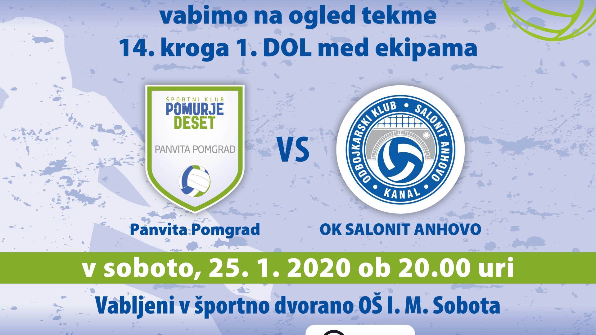 Panvita Pomgrad vs.Salonit Anhovo Dus Ben | 20. januar 2020 12:52 v Termin Sobota, 25. januar 2020 20:00 - Sobota, 25. januar 2020 22:00 Lokacija ŠPORTNA DVORANA OŠ 1 MURSKA SOBOTA Odbojka 14.krog 1DOL