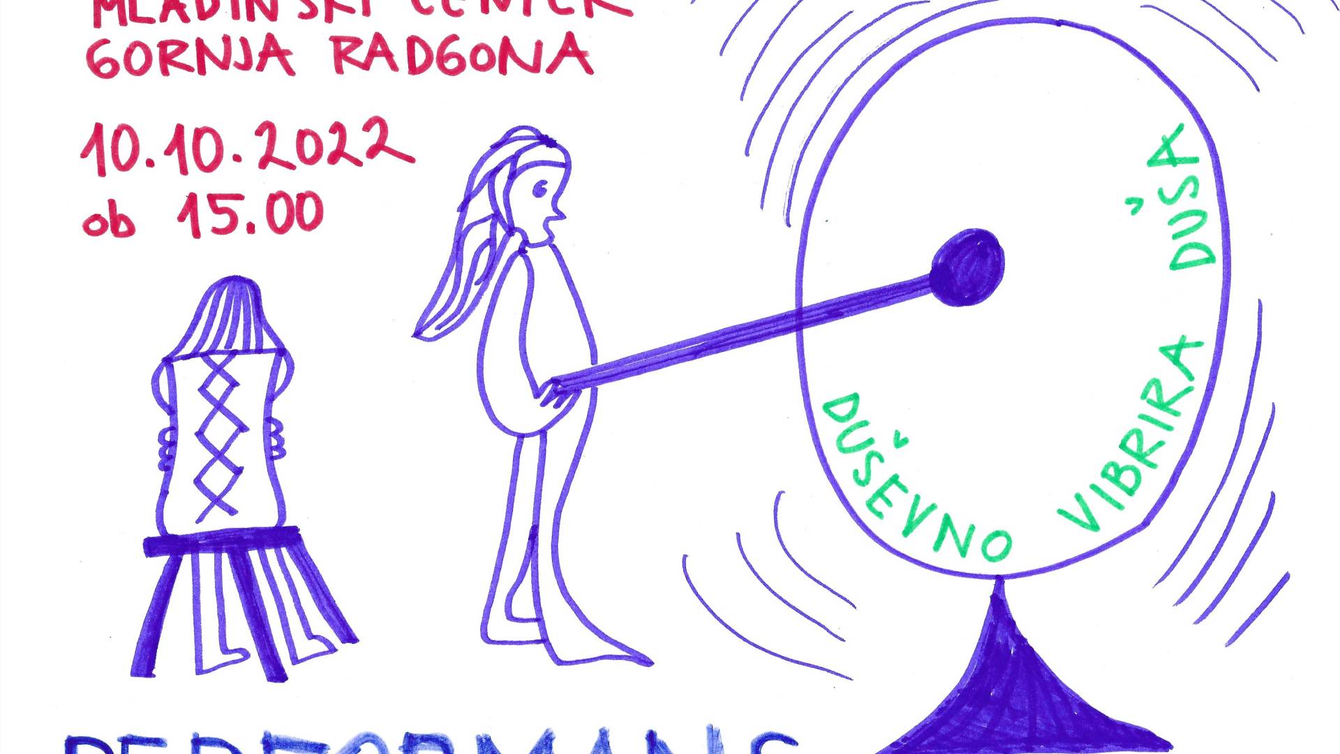 Mladinski center Gornja RadgonaMladinski center Gornja Radgona vabi na performans Saše Bezjak in Mie Frangeš "Duševno vibrira duša", ki bo v ponedeljek, 10. 10. 2022 ob 15.00 uri.