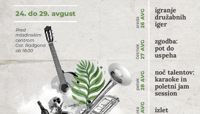 Mladinski center Gornja RadgonaNa tokratnem petkovem poetičnem večeru na prostem, bo Nika Škof govorila z uveljavljeno pesnico in pisateljico, pomurko Lučko Zorko.